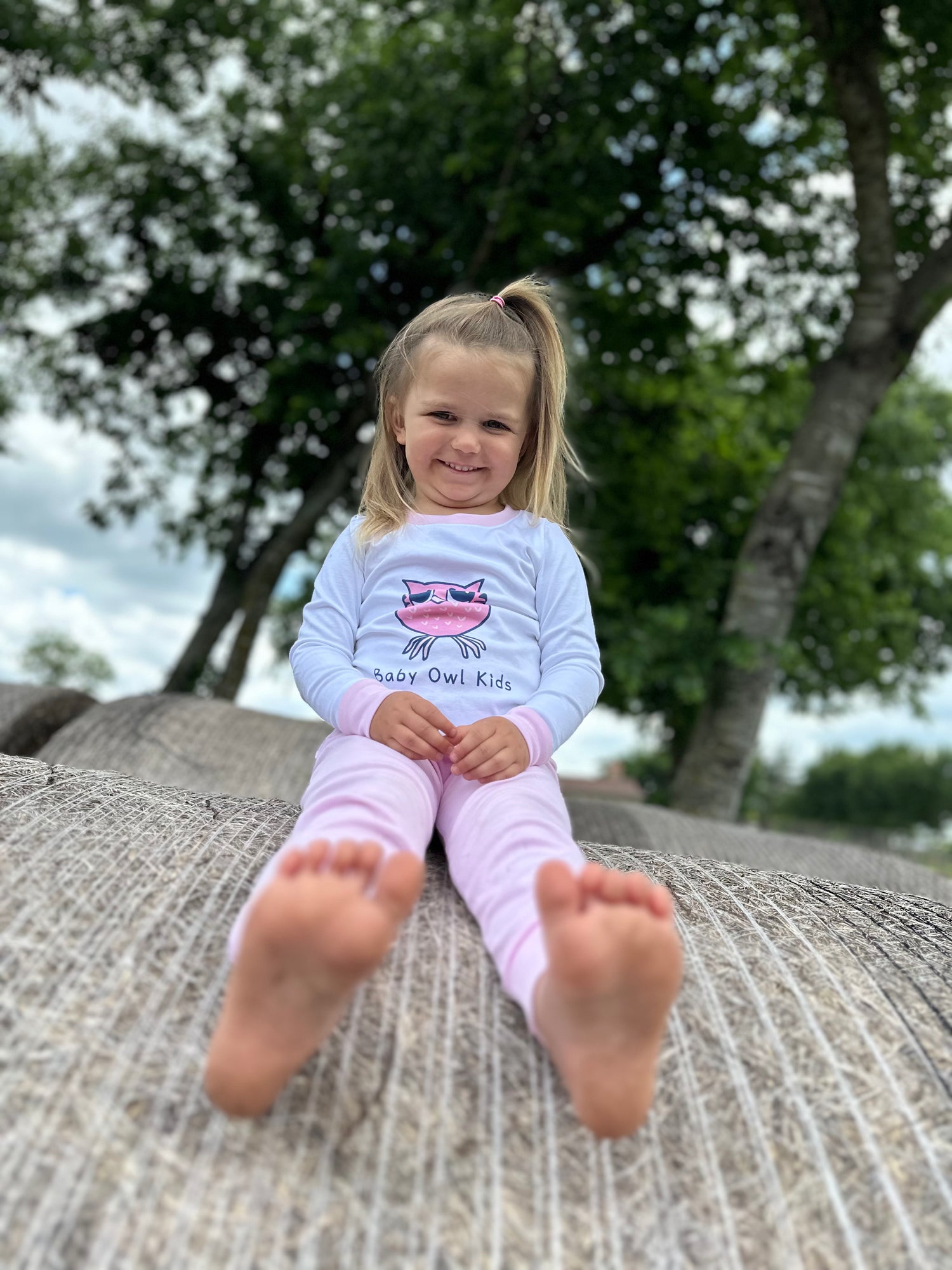 Cozy pink Pima cotton pajamas with a sweet Baby Owl design your child will love.
