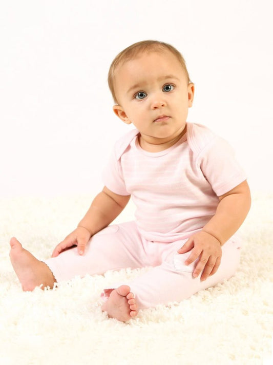 Short Sleeve Lap Shoulder T-Shirt – Pale Pink Stripe by Under The Nile