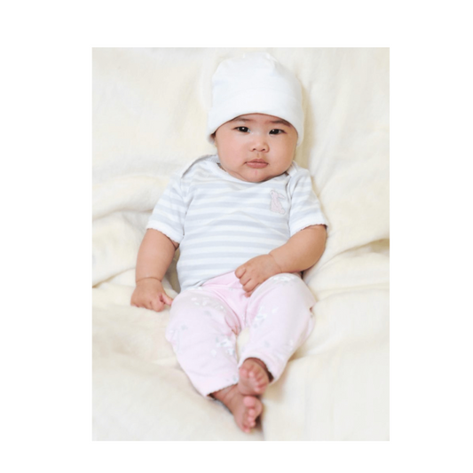 Short Sleeve Organic Cotton Bodysuit – Grey Stripe With Pink Bunny by Under The Nile